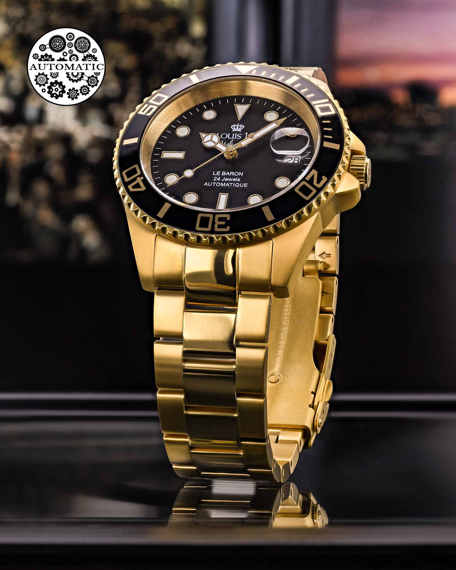Descubra la excelencia de Serie ilimitada LOUIS XVI – un reloj que no conoce concesiones. El acero inoxidable se combina con el elegante revestimiento de oro PVD para crear una apariencia que encarna la elegancia atemporal y la resistencia moderna. La esfera de color negro intenso con índices Luminova brillantes no sólo garantiza la mejor legibilidad de día y de noche, sino que también desprende pura clase.