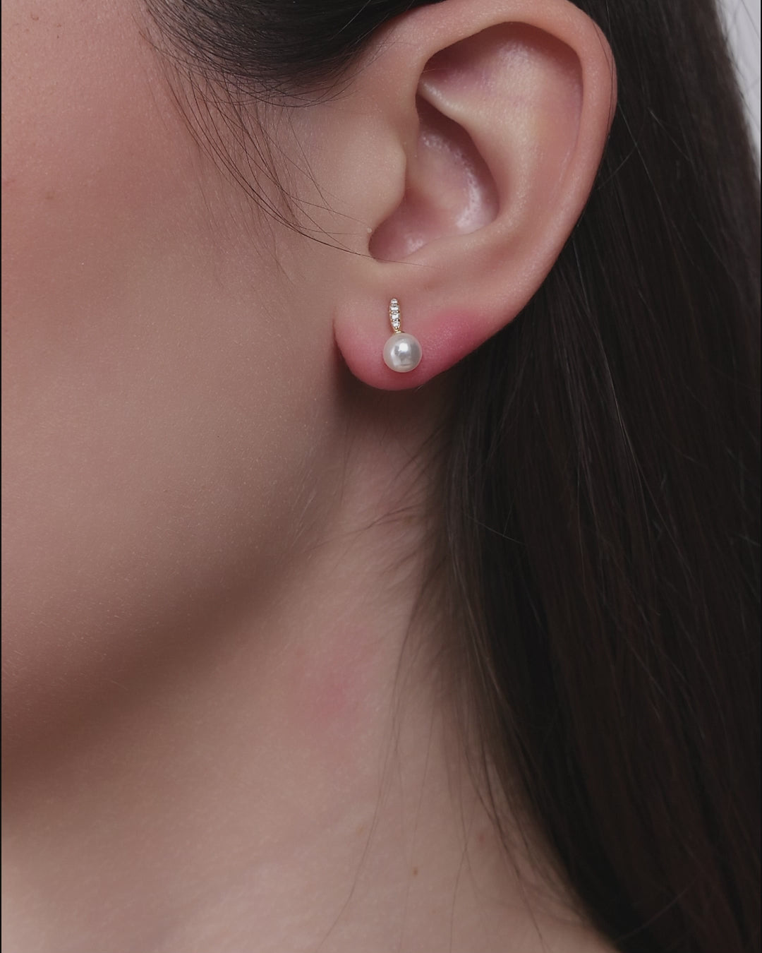 Diese Ohrringe stellen die sanfte Ausstrahlung der Perle in den Mittelpunkt. Harmonisch angeordnet und von feinen funkelnden Akzenten begleitet, entfalten die Perlen ein ausgewogenes Spiel aus Licht und Ruhe.