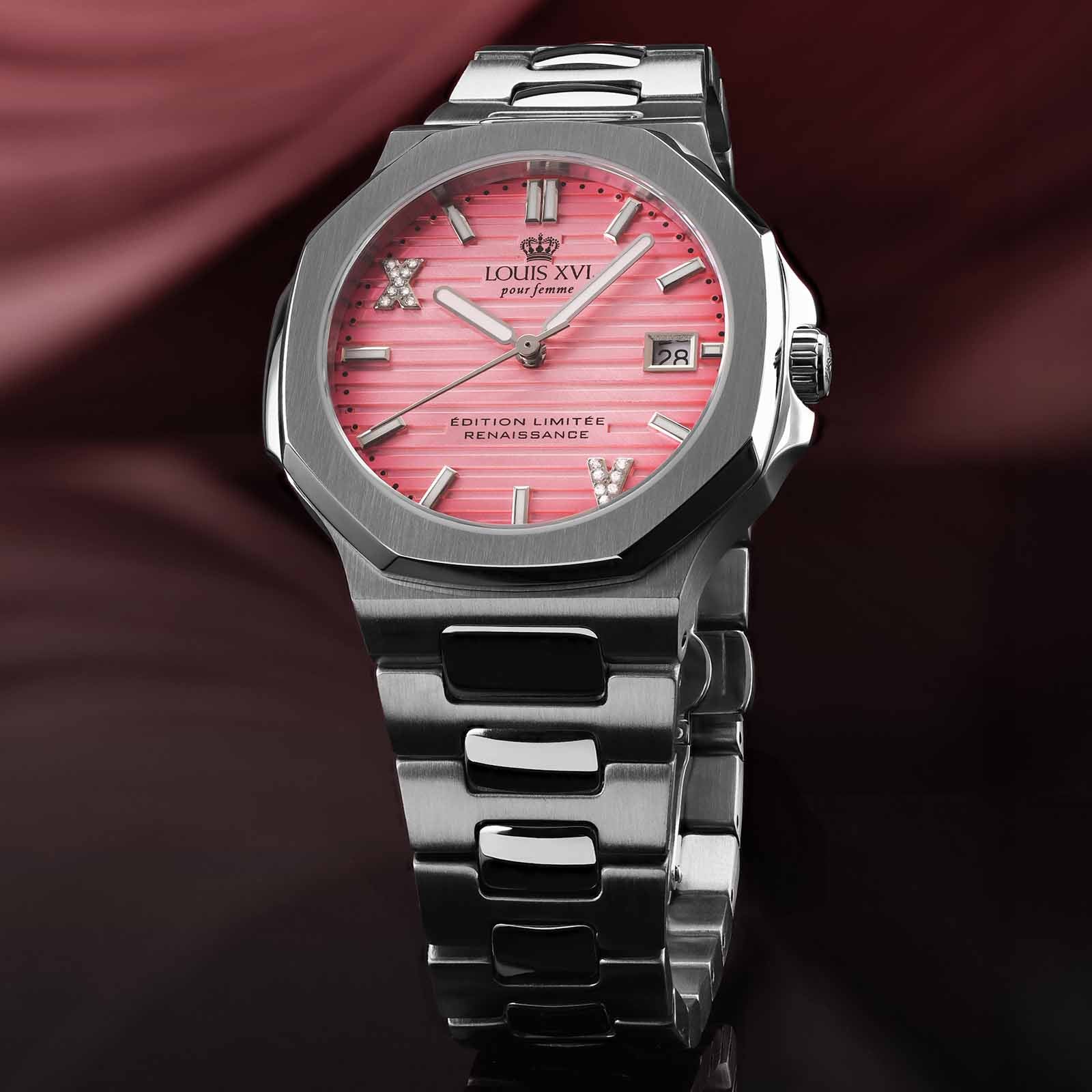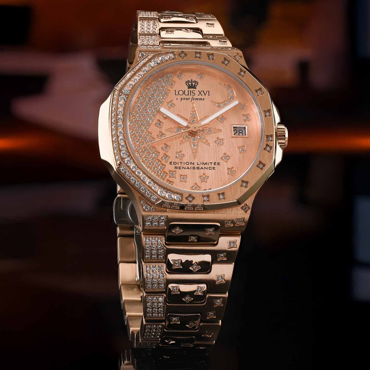 There are moments when time seems to stand still – and that is exactly where the Renaissance Femme begins. A collection inspired by the strength, grace, and distinctive style of modern women. The design combines soft lines with clear form, feminine colors with luxurious accents. Diamond-studded details, gently shimmering dials, and the fine interplay of light and structure make each watch a symbol of self-confidence and sophistication.
