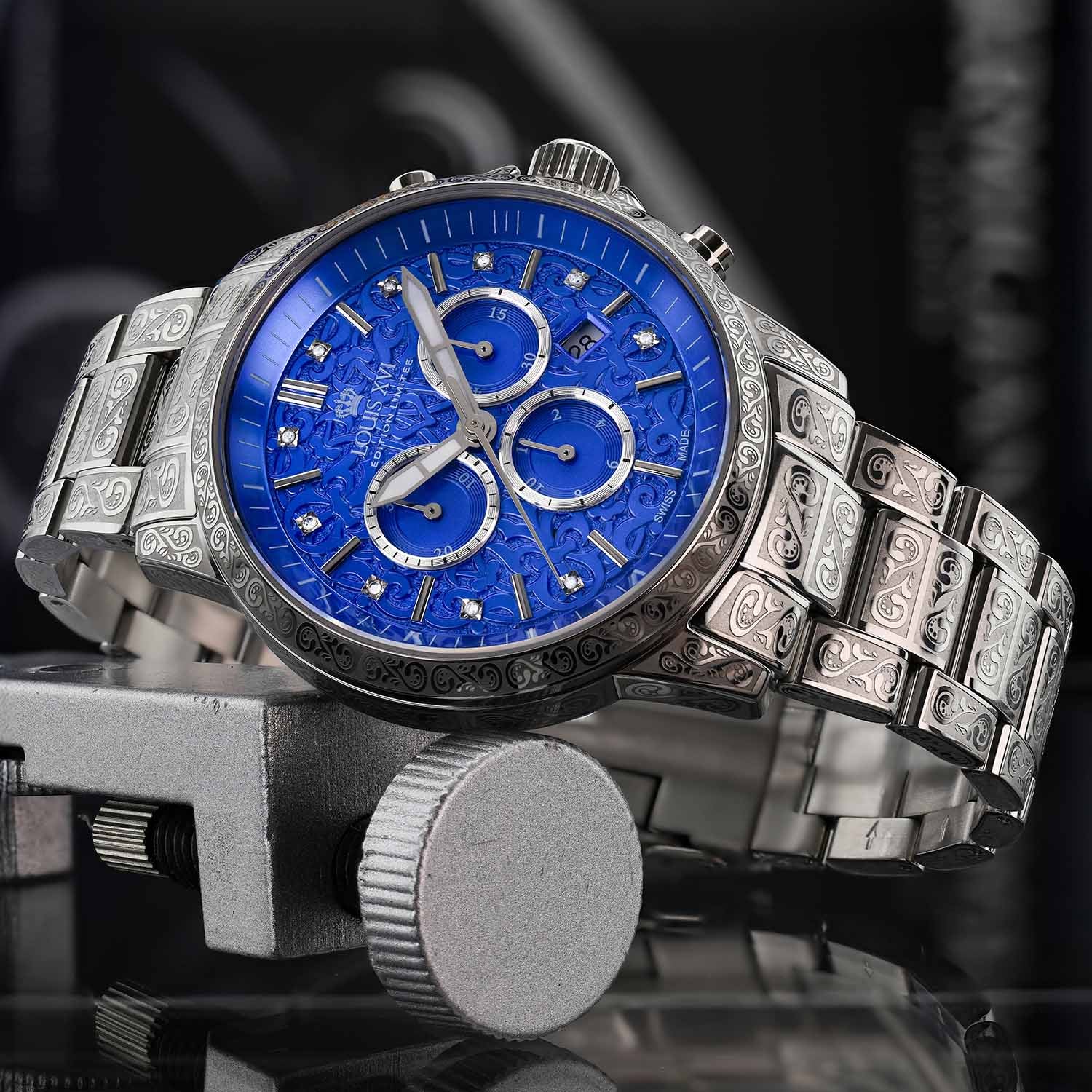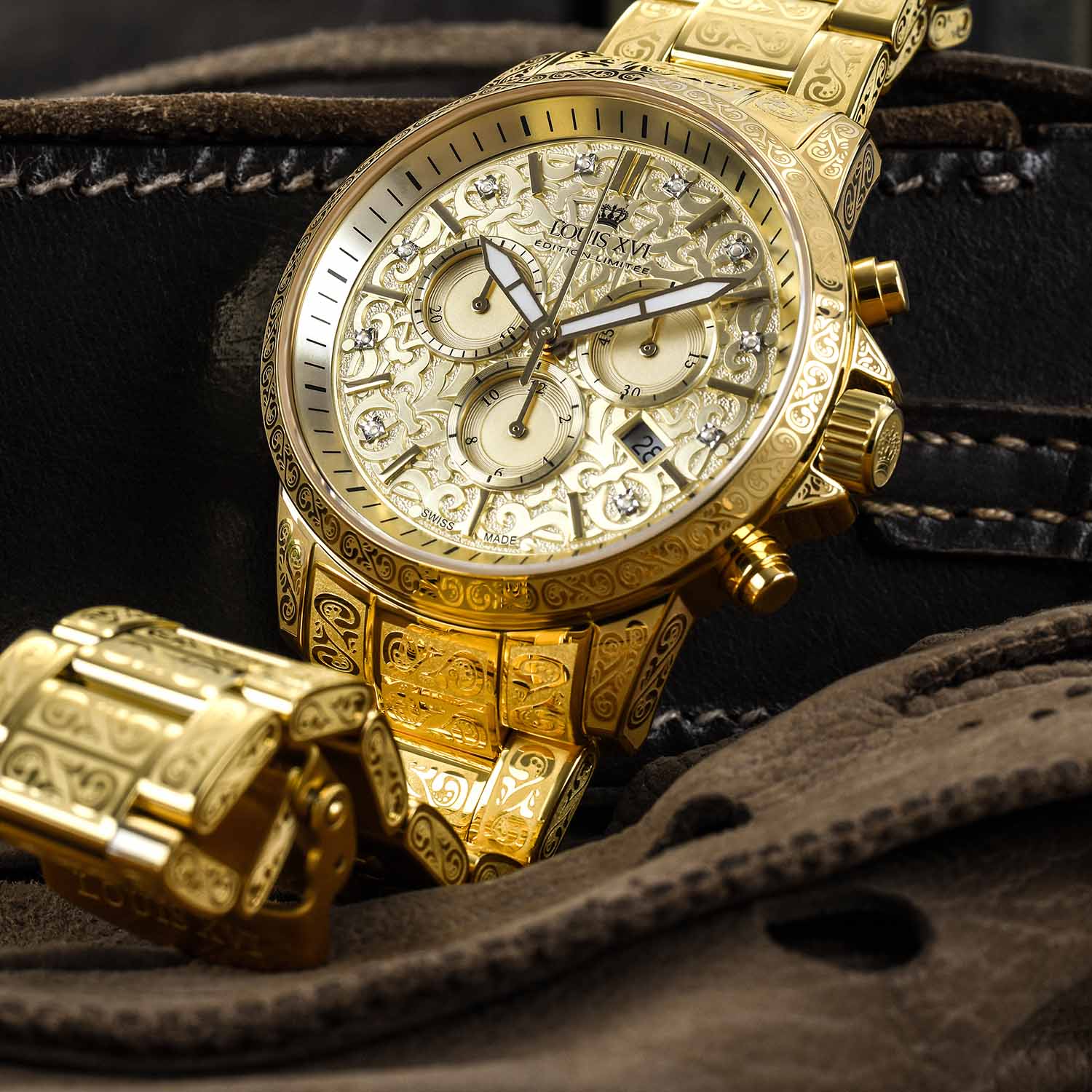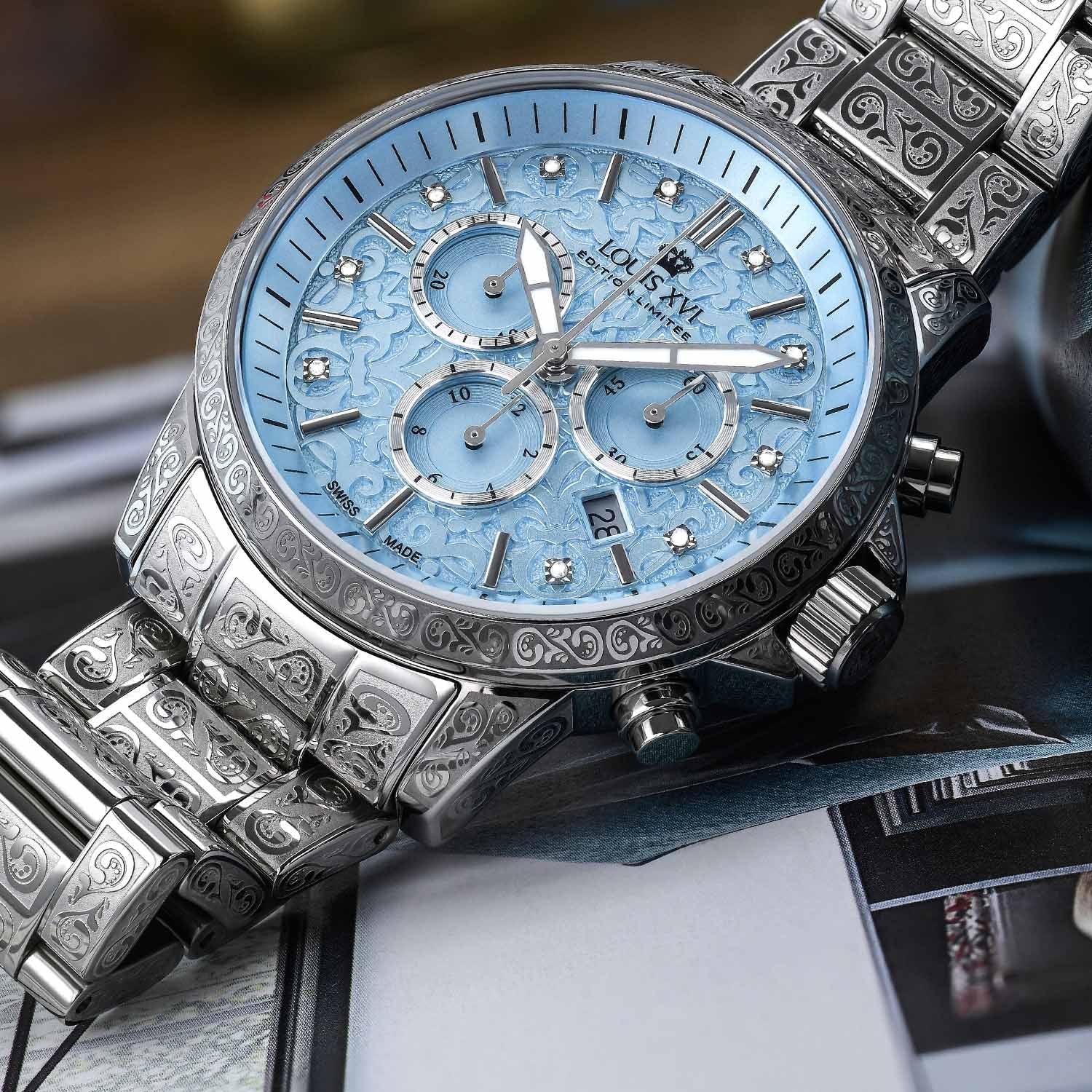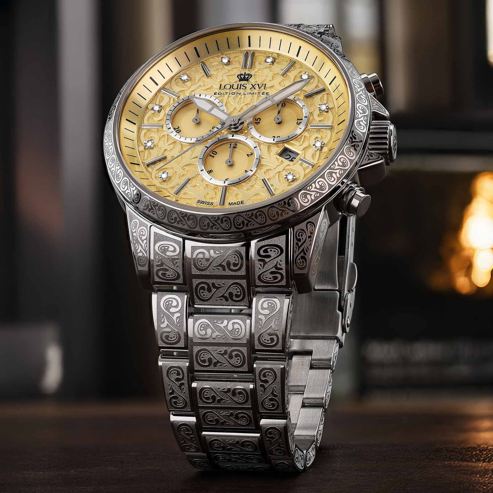 Equipado con un movimiento Ronda 5030.D STARTECH® con función stop, que tiene una desviación máxima anual de apenas 6 segundos. Casi libre de mantenimiento y siempre ha sido probado en su uso en el reloj del Palais Royal.