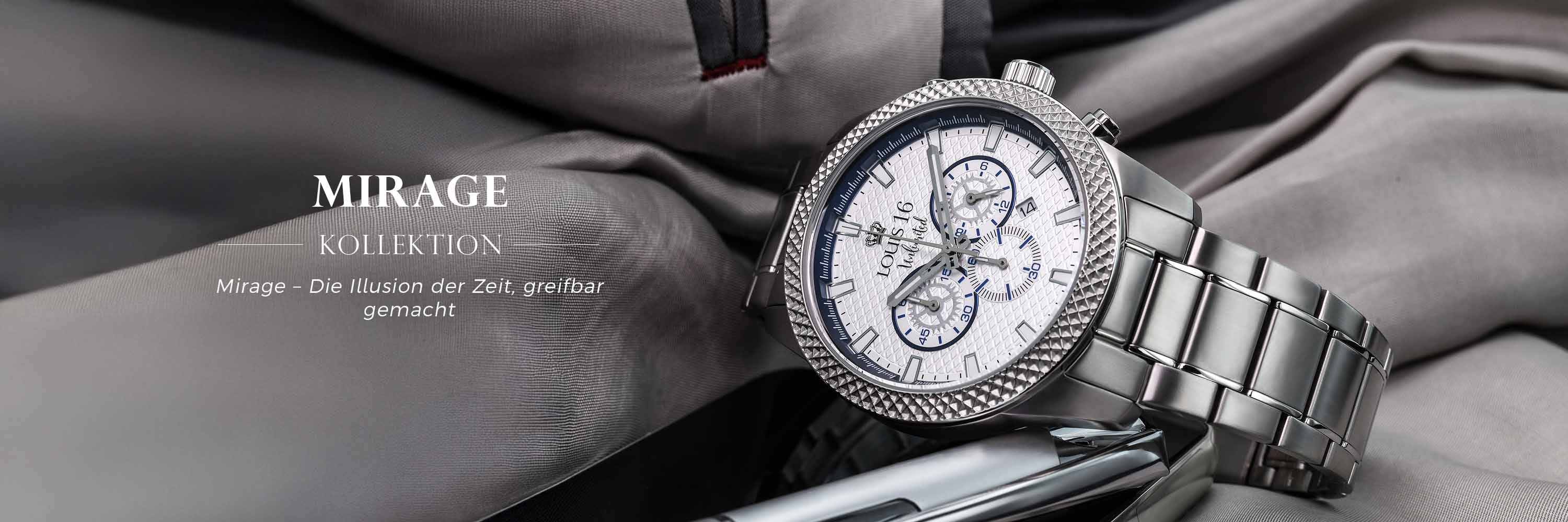 Con su cronógrafo, el Mirage le permite cronometrar segundos, minutos y horas, ideal para cualquier ocasión. El diámetro de 43 mm y el agradable peso de aproximadamente 150 gramos garantizan una comodidad perfecta.