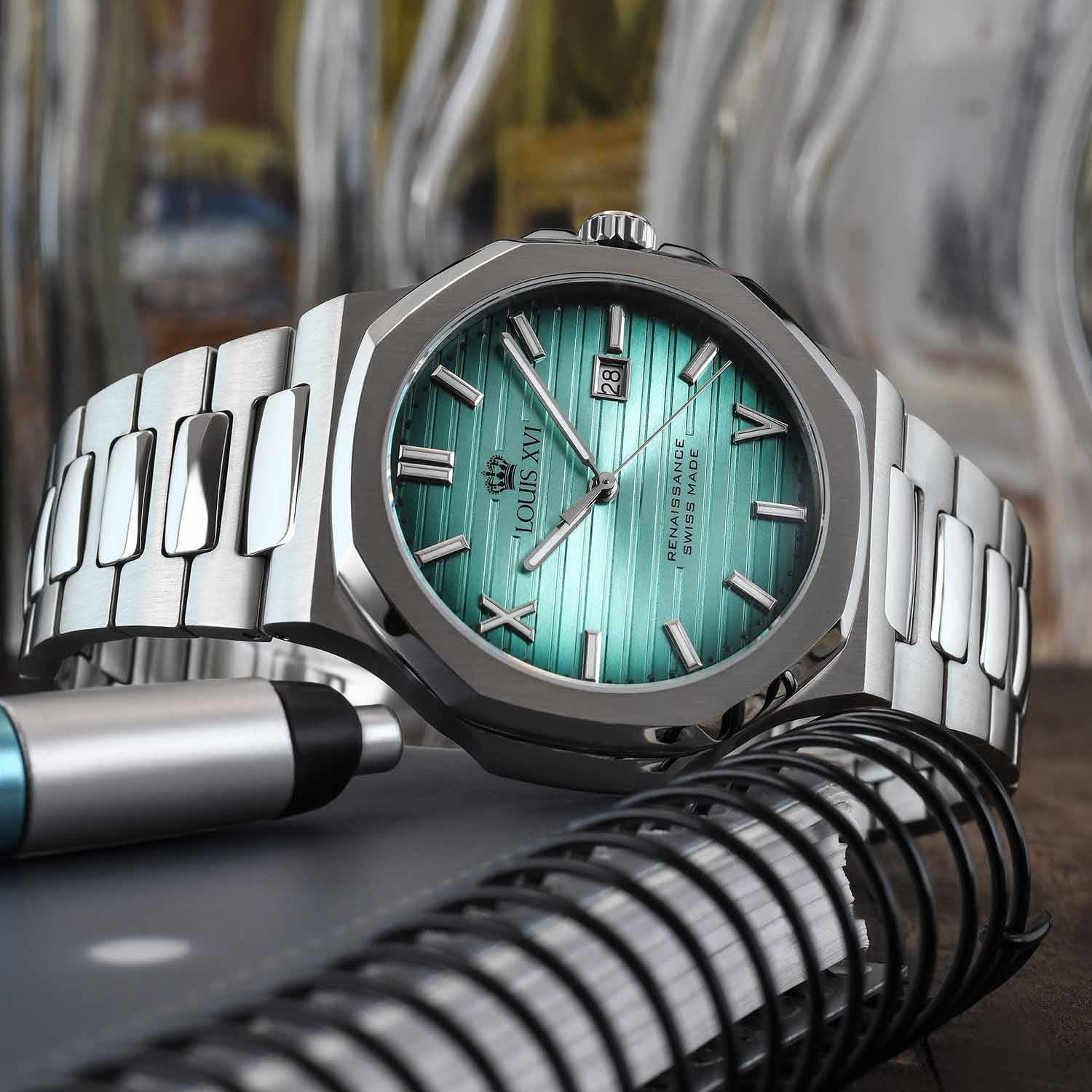 Hienosti muotoillut kotelot, näyttävät kellotaulut ja korkealaatuiset materiaalit, kuten 316L ruostumaton teräs, safiirilasi ja valinnaisesti CZ-timanttikoristelu, tekevät jokaisesta kellosta todellisen katseenvangitsijan. Olitpa sitten yksinkertaisen tyylin ystävä tai haluat maksimaalista loistoa – Renaissance edustaa läsnäoloa ilman, että se on äänekäs.