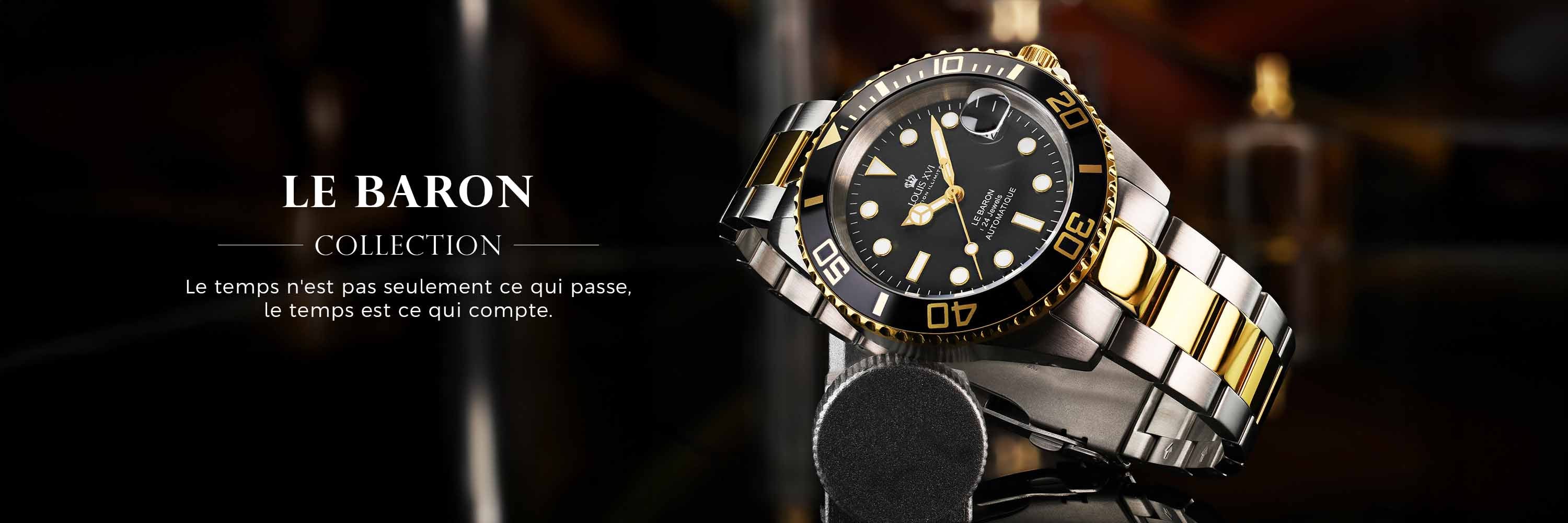 Les montres de la ligne Le Baron sont plus qu'un accessoire : elles s'affirment clairement. Que vous portiez un look décontracté ou une tenue professionnelle, Le Baron élève votre style à un nouveau niveau. Portez votre montre avec fierté, soyez conscient de vos choix et contrôlez votre temps.