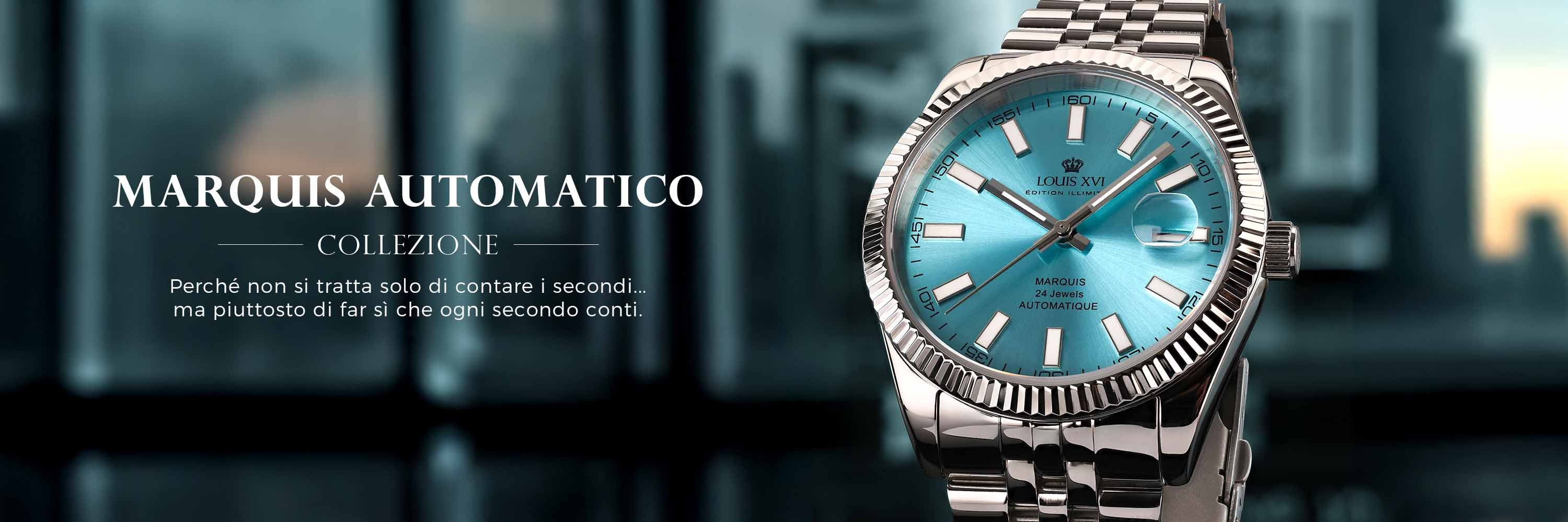 Ogni orologio della collezione Marquis è stato progettato per persone che apprezzano la classe e la qualità. Sia nella finitura oro-oro lucida che nel sorprendente nero con indici argento, la collezione Marquis unisce tradizione e modernità in modo inimitabile.