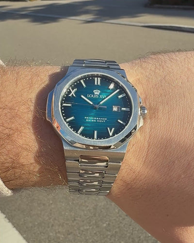 Realizzato in acciaio inossidabile 316L e protetto da vetro zaffiro antigraffio, questo modello incarna l'inconfondibile qualità LOUIS XVI. La combinazione armoniosa di linee chiare nel linguaggio del design e l'arte orologiera svizzera precisa lo rende un compagno per ogni occasione – elegante, di carattere e duraturo.
