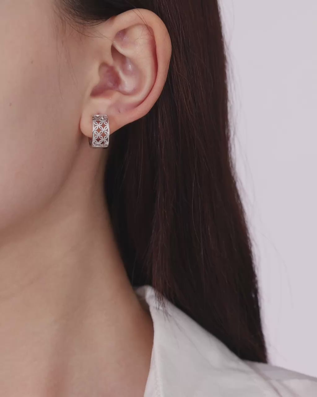 In Silber betonen die AJOURÉ Ohrringe den Kontrast zwischen klarer Geometrie und floraler Form. Die durchbrochene Struktur lässt das Licht frei passieren und erzeugt je nach Blickwinkel eine präzise, moderne Wirkung. Ein Schmuckstück mit klarer Linienführung und zeitgemäßem Charakter.