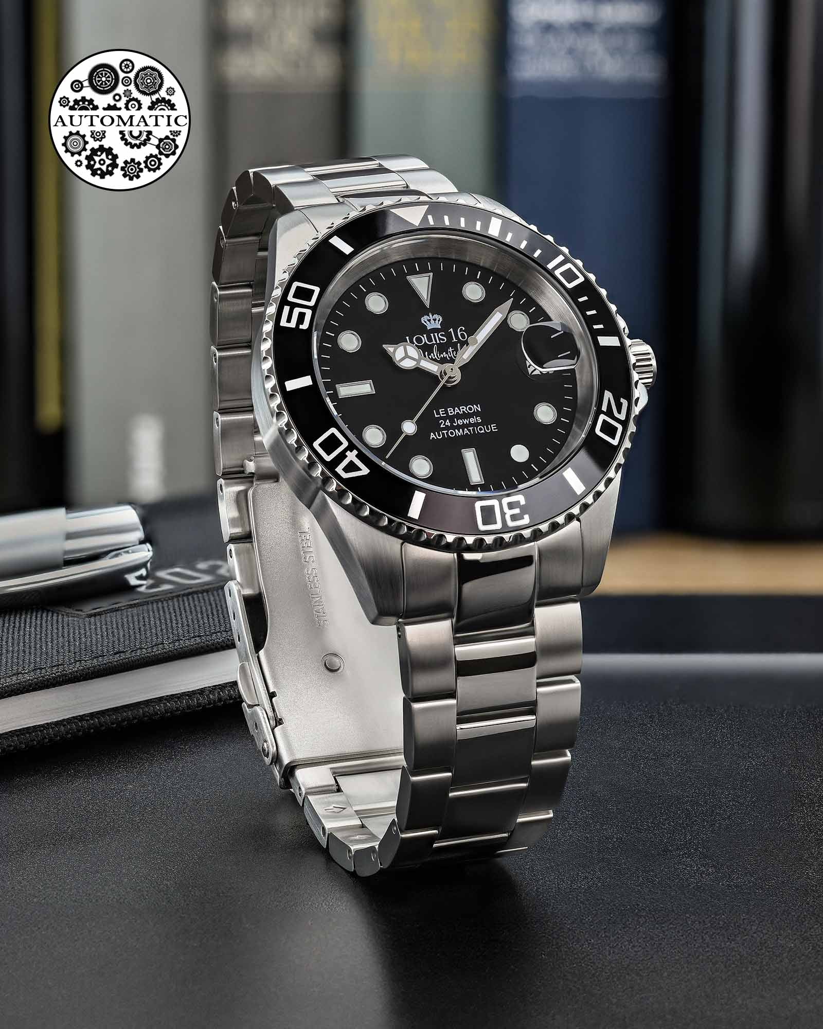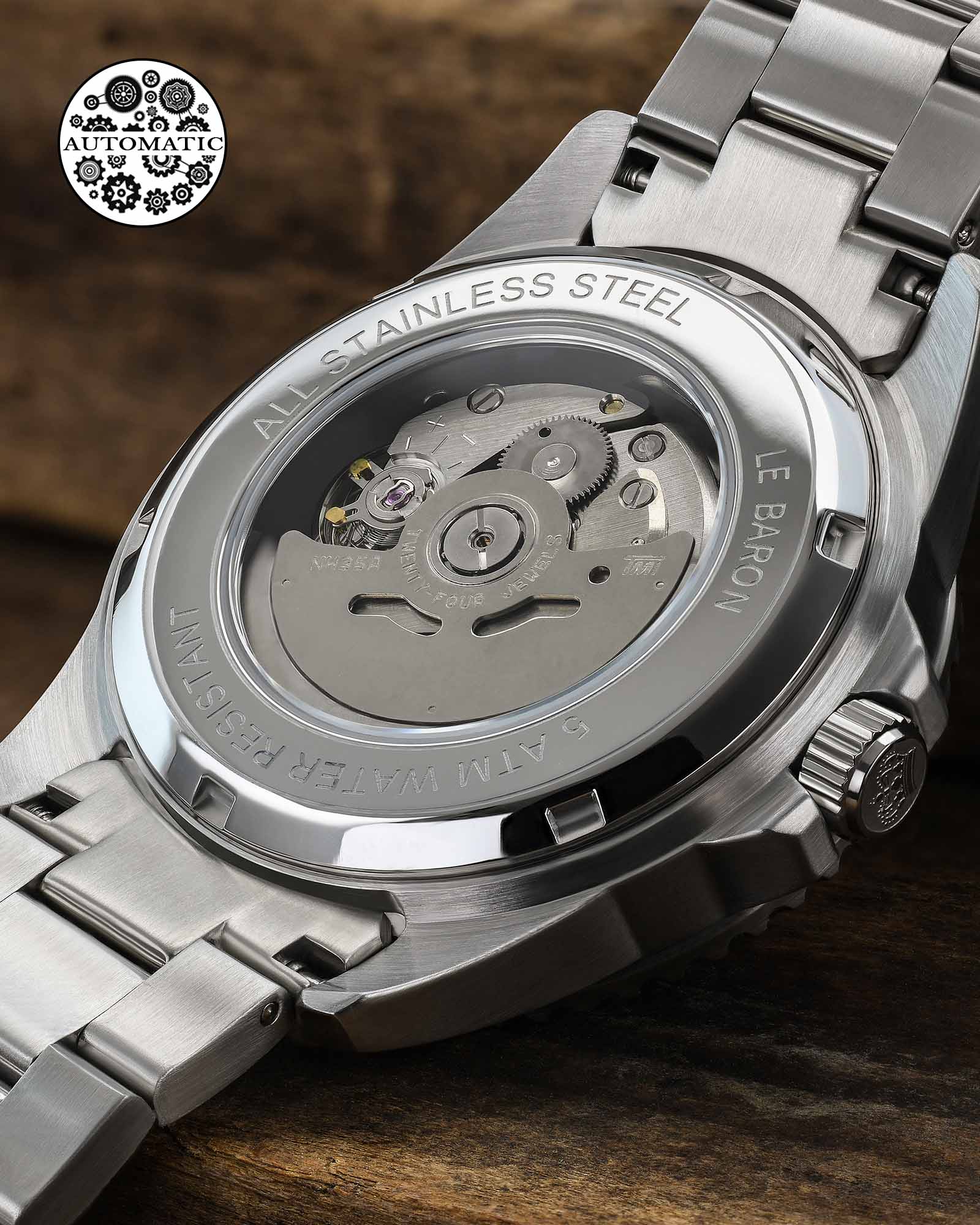 Med sine klare linjer og kompromissløse presisjon står Le Baron ikke bare for stil, men også for dine krav til kvalitet og holdbarhet. Denne klokken følger deg uanstrengt gjennom hverdagen, enten det er på kontoret eller på eventyr, og viser at sann styrke ofte ligger i tilbakeholdenhet.