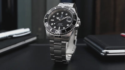 Le Baron ur fra  Ubegrenset samling  er legemliggjørelsen av enkel eleganse og robust funksjonalitet. Laget av rustfritt stål av høy kvalitet og raffinert med en dyp svart finish, kombinerer denne klokken slående estetikk med teknisk perfeksjon. Den mørke urskiven med lysende indekser sikrer optimal lesbarhet, enten det er i sterkt dagslys eller i mørket.