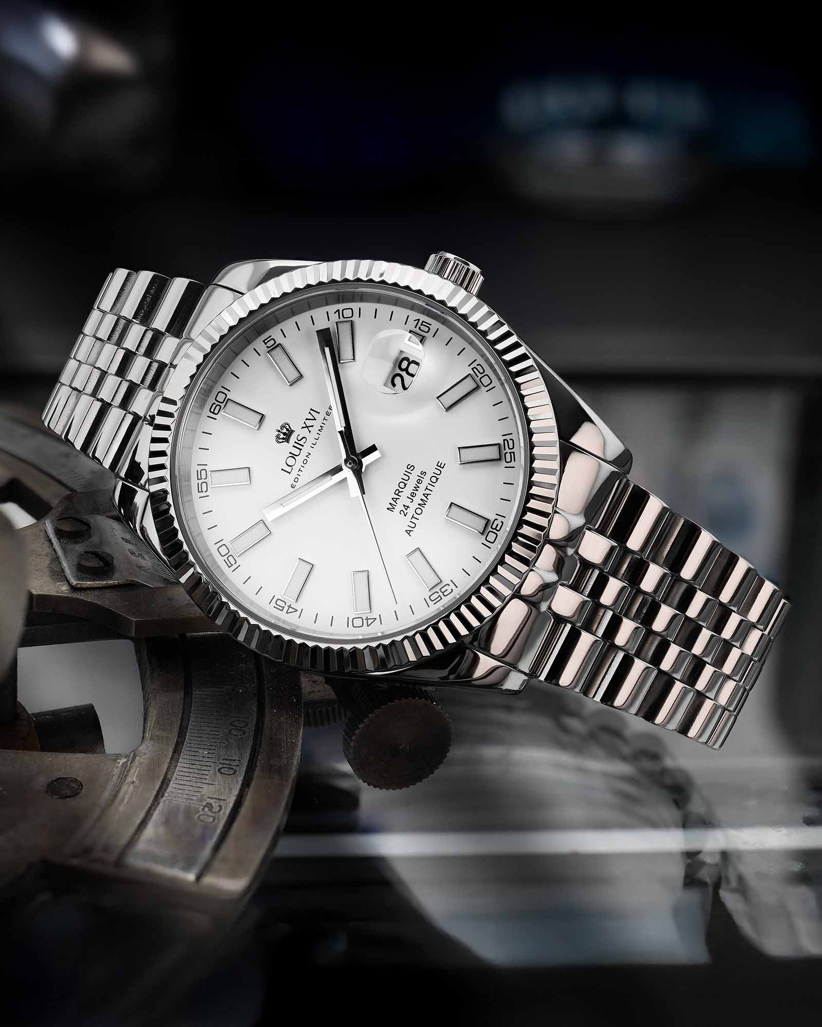 Nieograniczone i wycenione, aby tworzyć stałą wartość w obecnych czasach. „Marquis” napędzany jest japońskim mechanizmem automatycznym Seiko NH35, znanym z trwałości i maksymalnej precyzji. Mechanizm ten oznacza niezawodność i długowieczność – nawet po wielu latach wykonuje swoje usługi perfekcyjnie i można go wielokrotnie poprawiać, aby służył przez pokolenia.