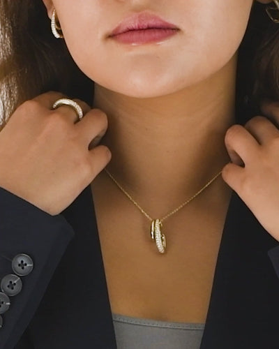 Цепочка из стерлингового серебра S925 имеет подвеску высотой 25 мм, состоящую из двух удлиненных капель: один элемент гладко отполирован для спокойного сияния, капля с паве из циркония для тонкого блеска. Вместе они создают скульптурный, современный вид с элегантной легкостью.
