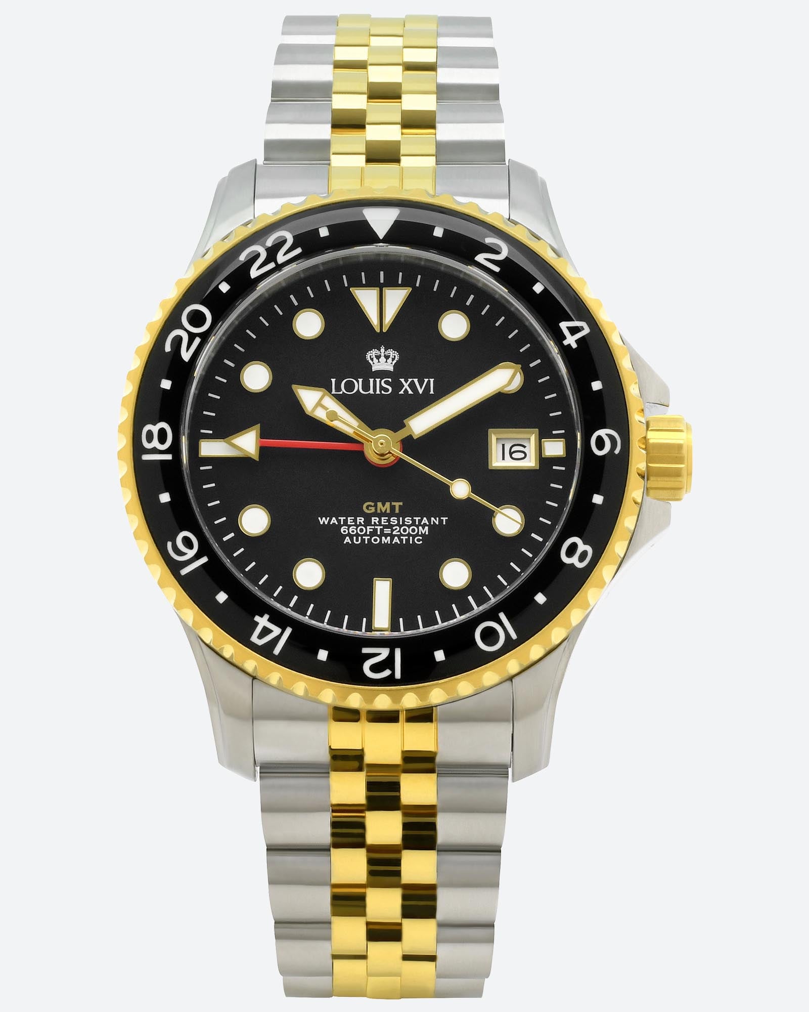 - Lëvizja automatike e saktë Miyota GMT: Lëvizja automatike me cilësi të lartë Miyota 9075 siguron shfaqje të besueshme dhe të saktë të kohës. Funksioni GMT e bën të lehtë leximin e një zone të dytë kohore - perfekt për udhëtarët e shpeshtë.
