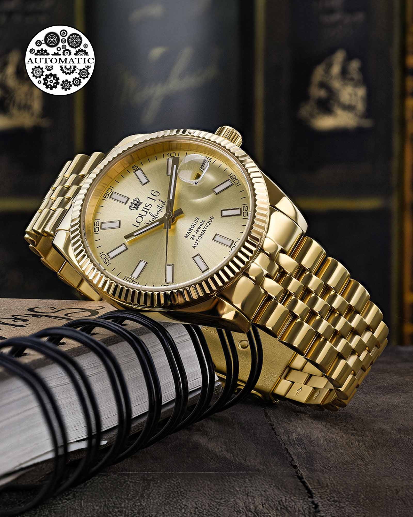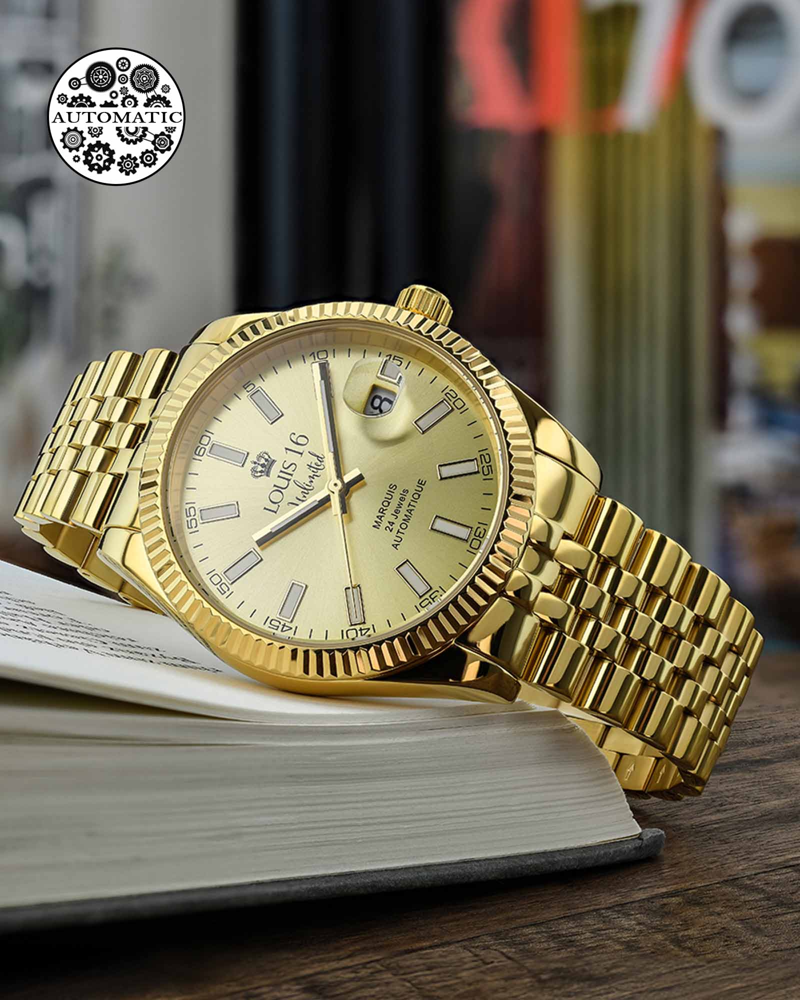 Marquis kombinon dizajnin klasik me orët moderne. Finitura elegante prej ari i jep asaj një pamje të përjetshme, ndërsa lëvizja e besueshme Seiko NH35 automatike siguron matjen e saktë të kohës. Me një rezervë energjie prej 41 orësh dhe një ndërtim të fortë, Marquis është shoqëruesi i përsosur për jetën e përditshme dhe raste të veçanta.
