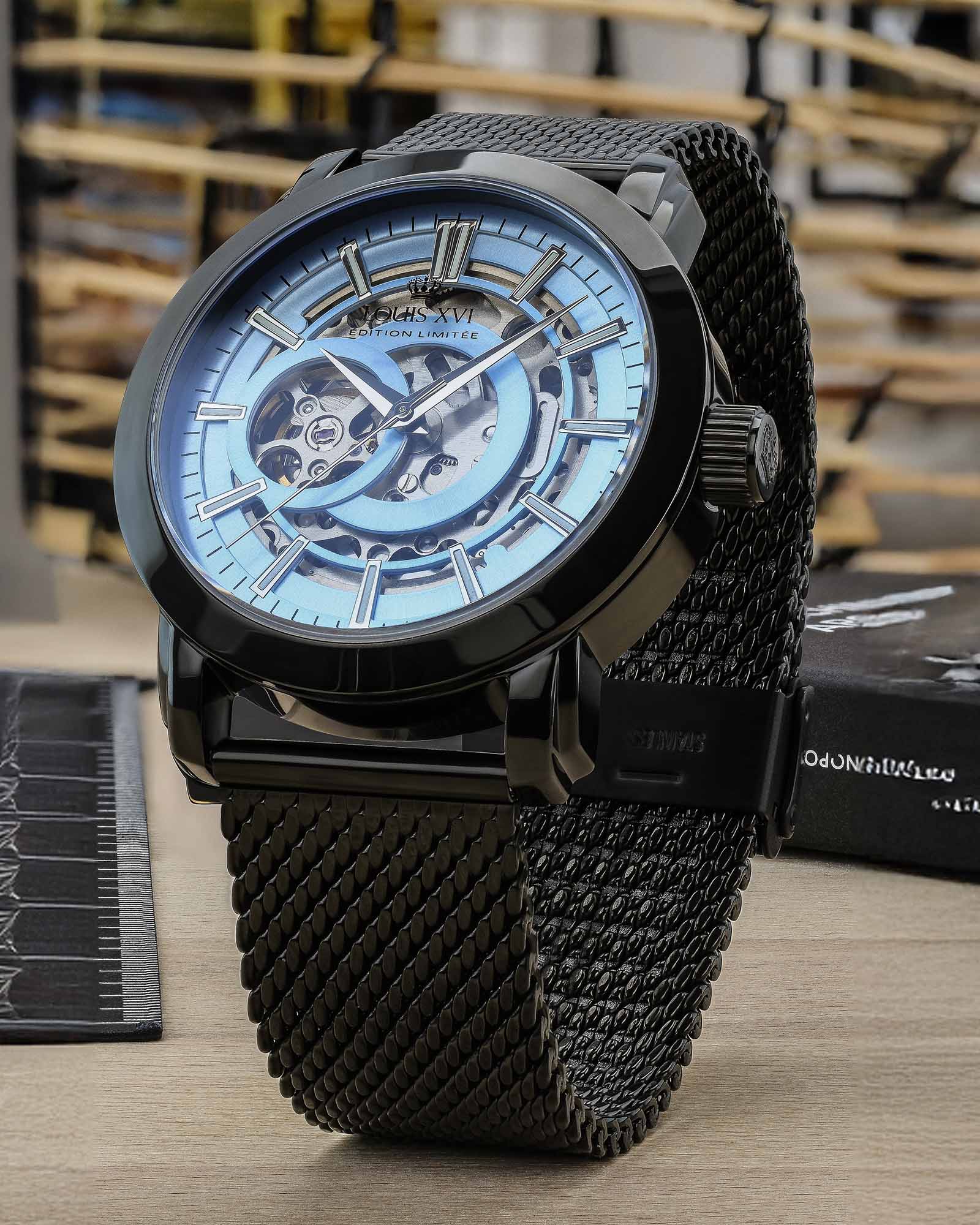 Црно и плаво заједно? Да, то функционише – и то како! Ова верзија Versailles 2.0 је савршен избор за све који воле да се истичу из масе. Интензивна плава боја бројчаника доноси свеж акценат, док црно кућиште даје изгледу стабилност.