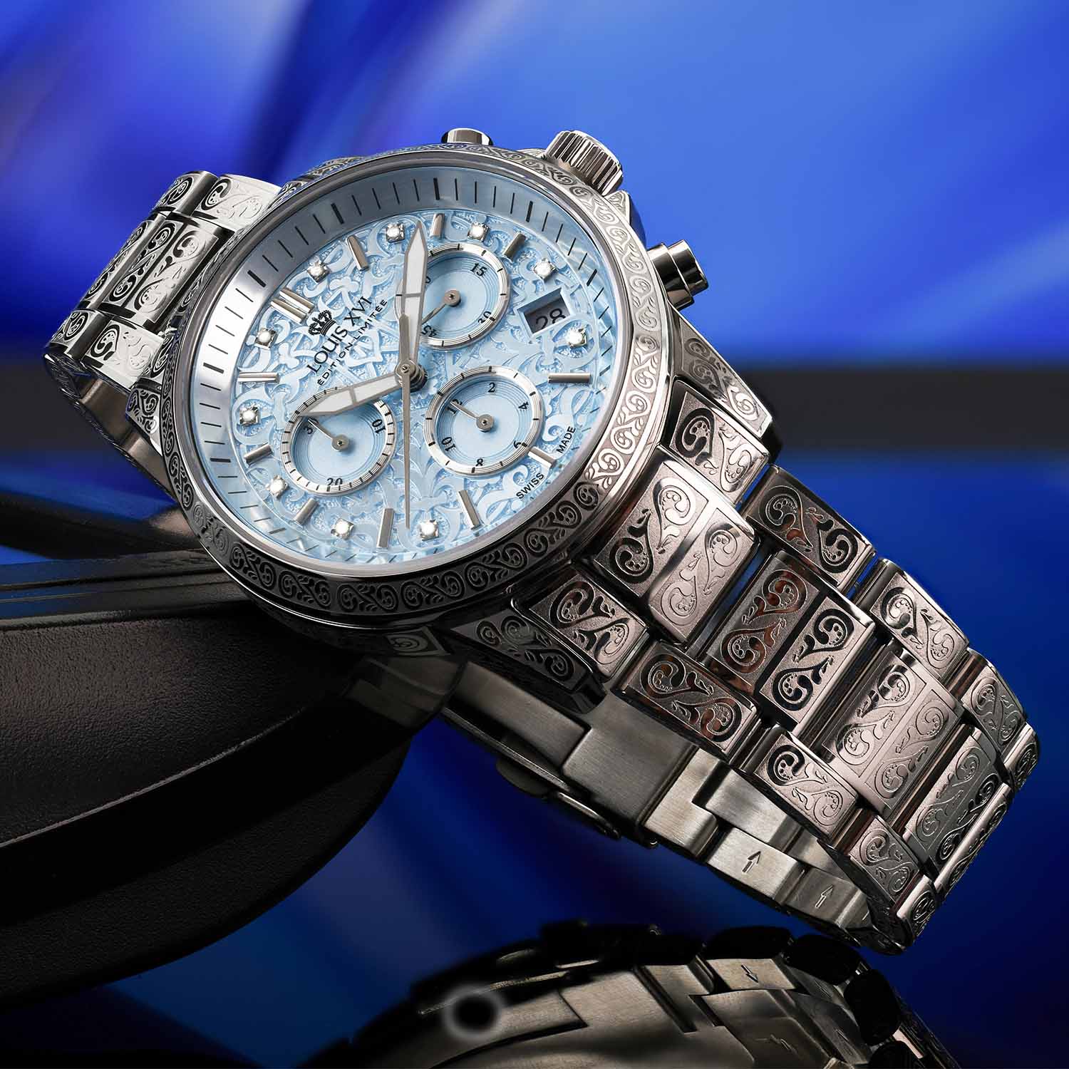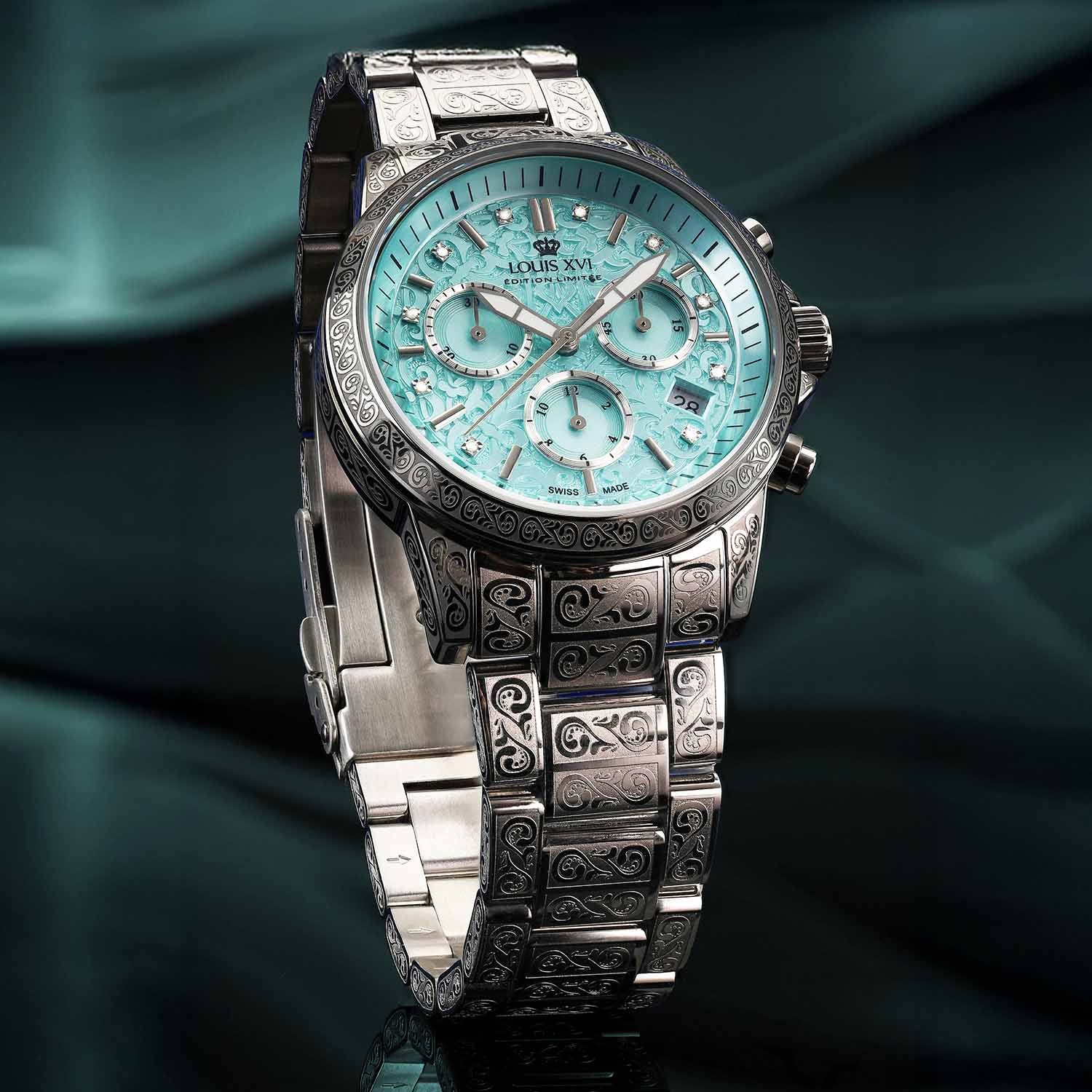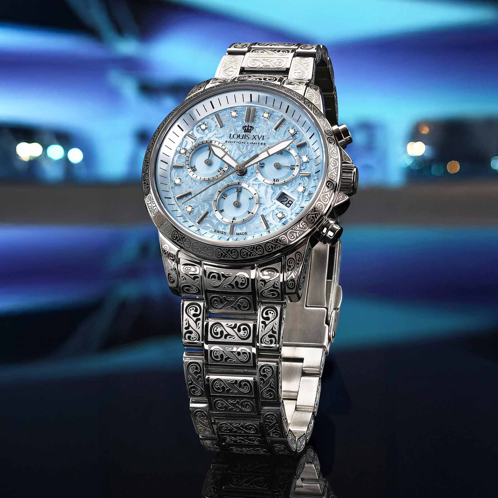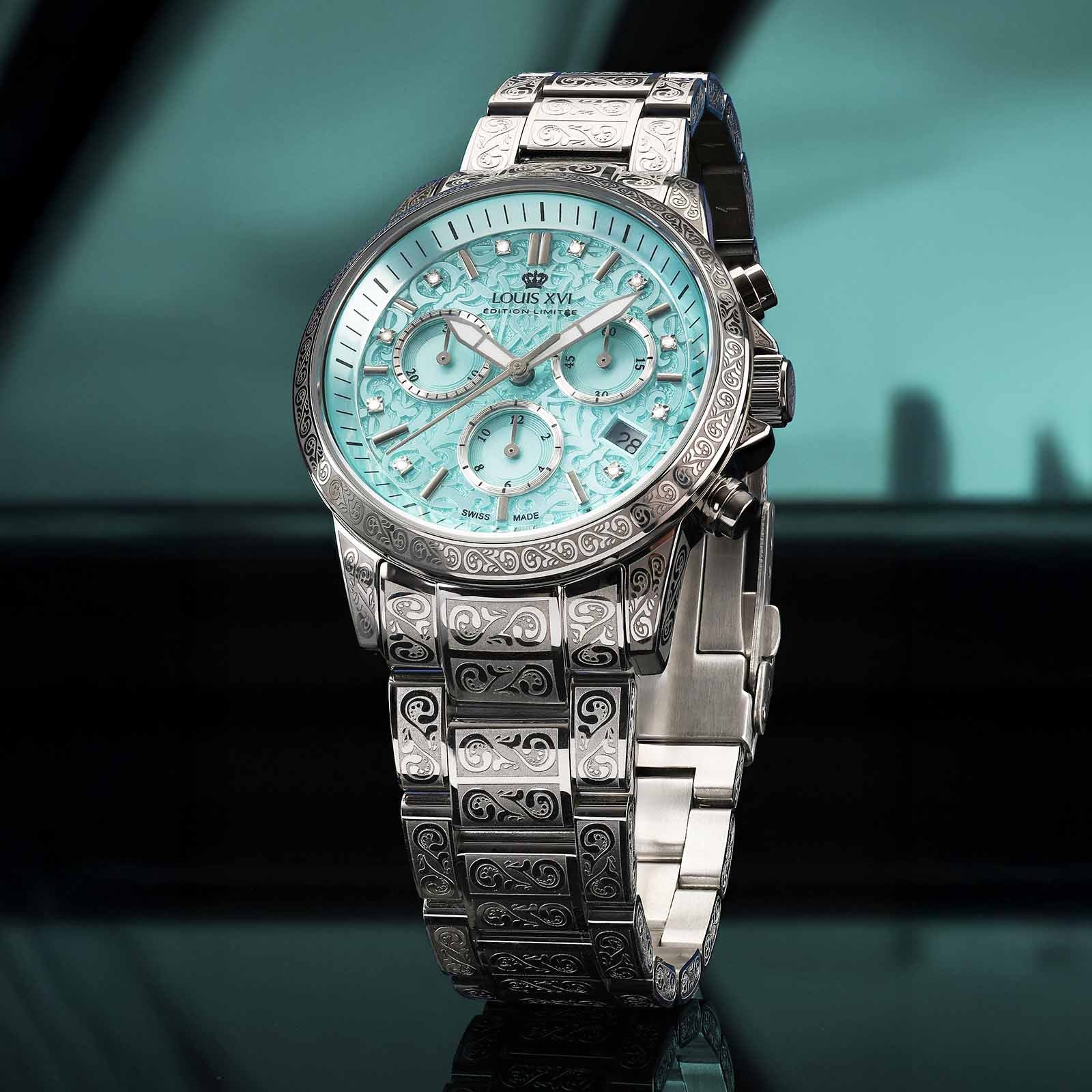 Gnistrande detaljer på urtavlan, mjukt skimrande färger som Baby Blue, Minty Green eller klassiskt vitt – varje variant berättar sin egen historia. Oavsett om du vill göra ett uttalande i vardagen eller söker en speciell höjdpunkt på kvällen: Denna klocka anpassar sig till ditt liv.