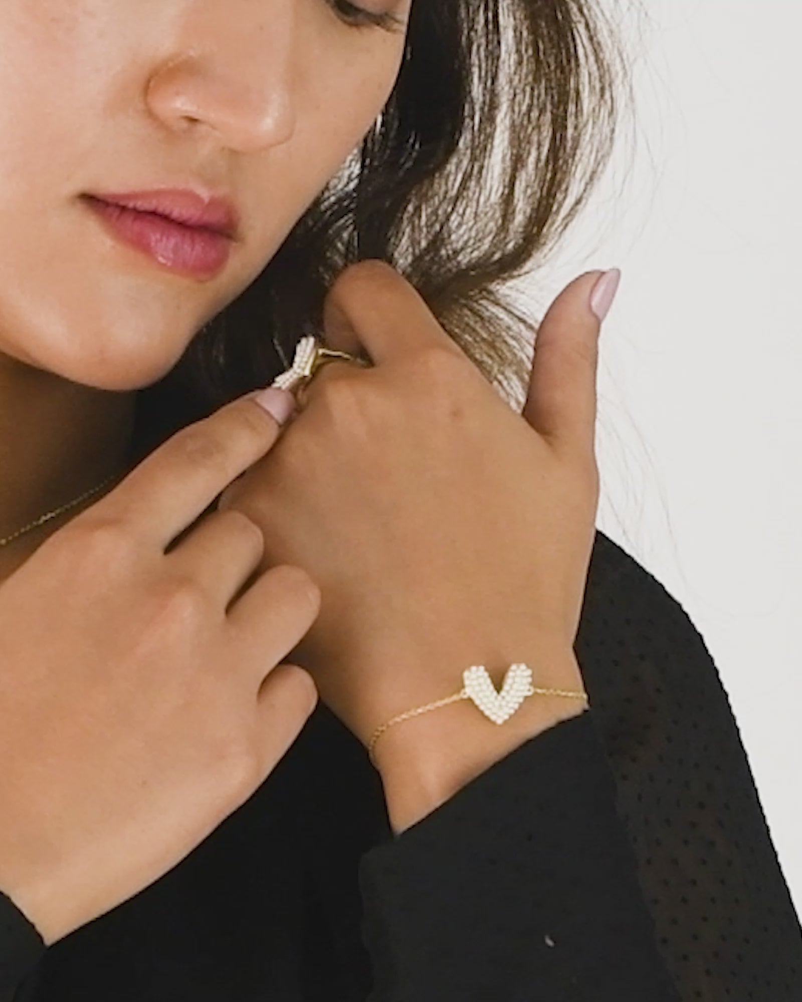 Denna ring av S925 sterlingsilver med 14K guldplätering visar ett modernt skulpturalt hjärtmotiv (ca. 15 mm), tätt besatt med fina pärlor för en lugn och ädel glans. Den öppna ringkroppen erbjuder storleksflexibilitet. Den universella storleken kan försiktigt justeras smalare eller bredare och anpassar sig bekvämt till fingret. Tidlös romantik i klar form: ömtåligt, modernt och lyxigt tolkat.