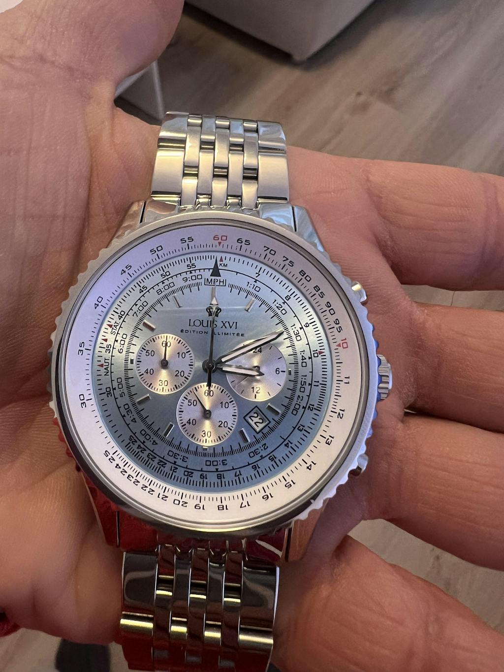Silver och svart – den perfekta kombinationen för en ren look med karaktär. Den strukturerade urtavlan i flygarstil ger klockan en teknisk touch utan att verka överbelastad. Passar alltid – oavsett om det är vardag eller middag