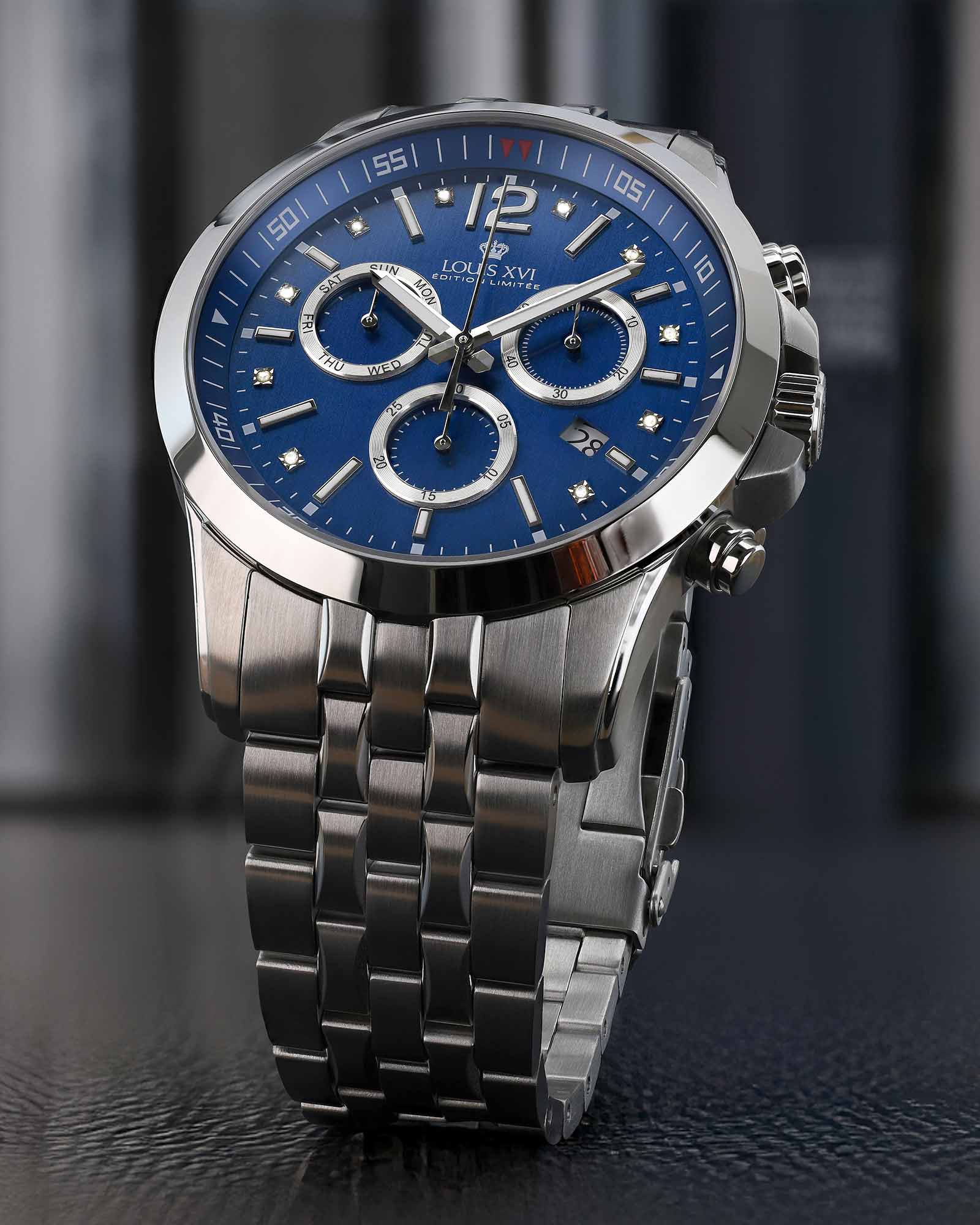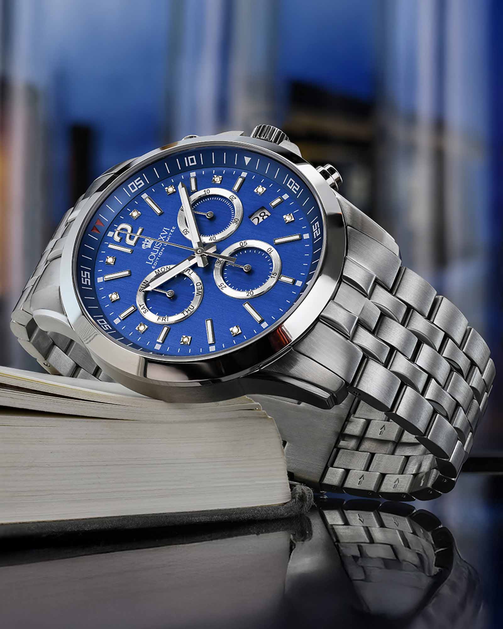 Med sin djupt blå urtavla och silverboett utstrålar Athos le Grand 2.0 Silver-Blå Ref:3521 fräsch elegans. De 10 diamanterna ger urtavlan en touch av lyx, medan den sportiga kronograffunktionen gör klockan mångsidig.