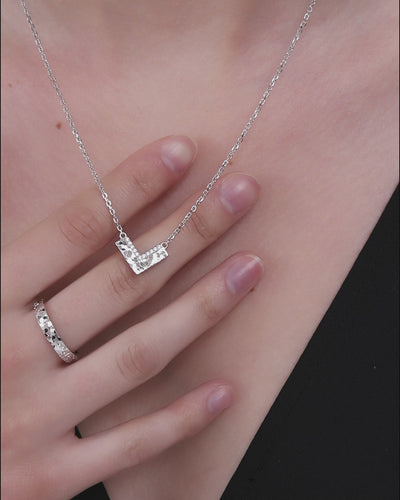 Die schlichte V-Form schmiegt sich elegant an den Hals an und unterstreicht die natürliche Silhouette.